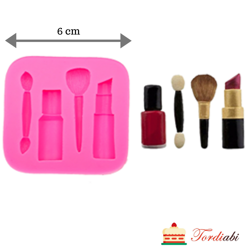 Suurepärane väike silikoonvorm, mille abil saad lihtsa vaevaga väikese meigitarvete komplekti tordile/ tassikookidele meisterdada.