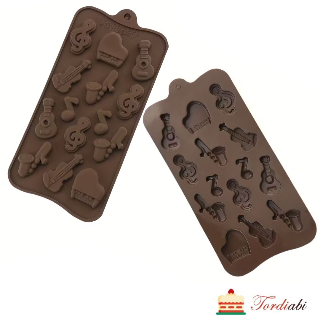 Suurepärane vorm, et valmistada oma tordile erinevaid muusikariistu. Sobib kasutamiseks nii šokolaadi kui ka suhkrumassiga.