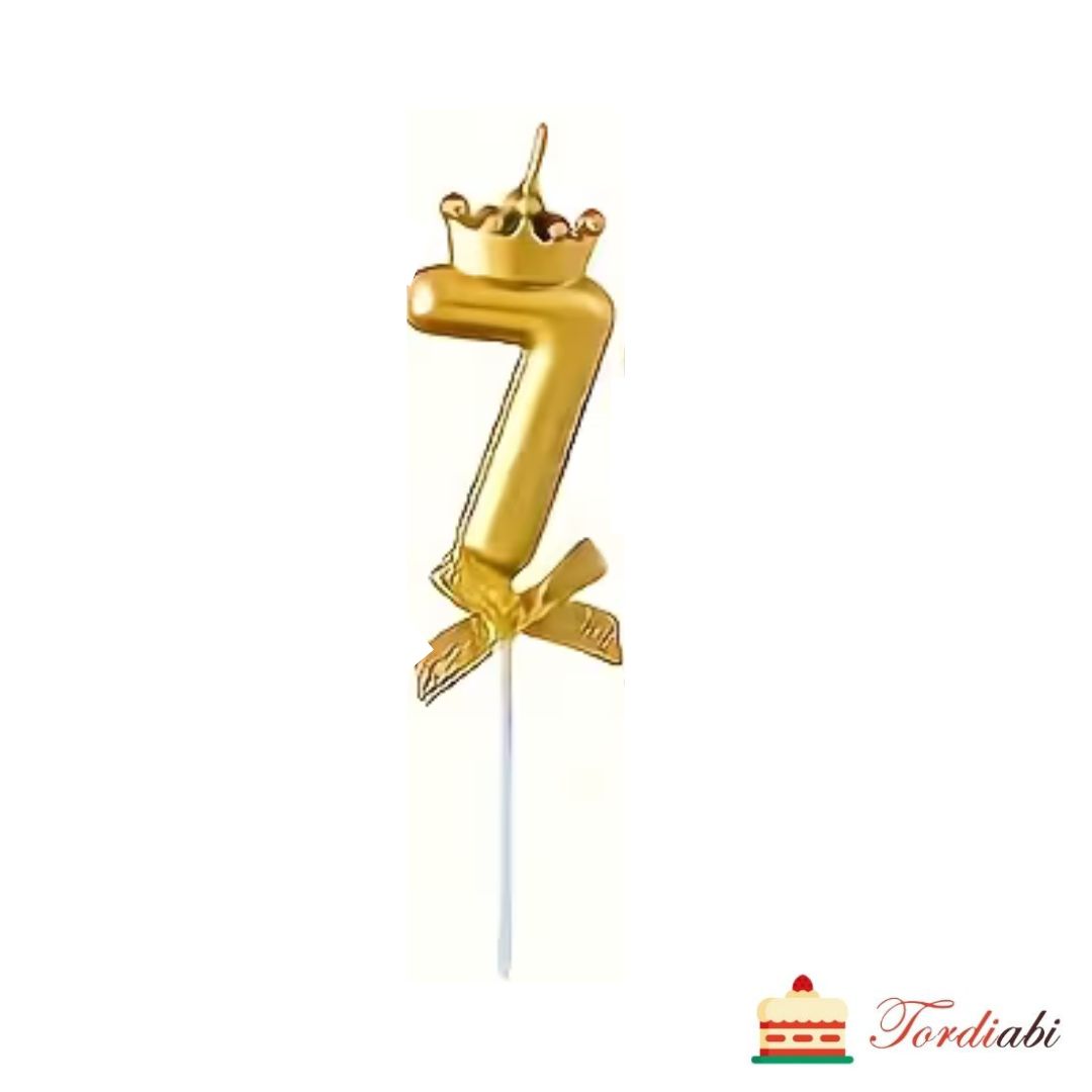 Esileht / Kõik torditegemiseks vajalik TEEMADE KAUPA / Sünnipäev / Tordiküünal, kuldne, number seitse krooniga, kuldse lipsukesega