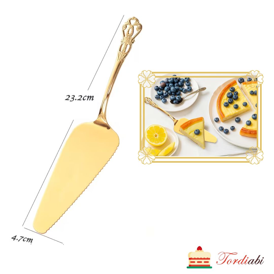 Esileht / KÜPSETAMISEKS VAJALIK / Töövahendid kondiitrile ja pagarile / Tordilabidas, kuldne, sakilise servaga