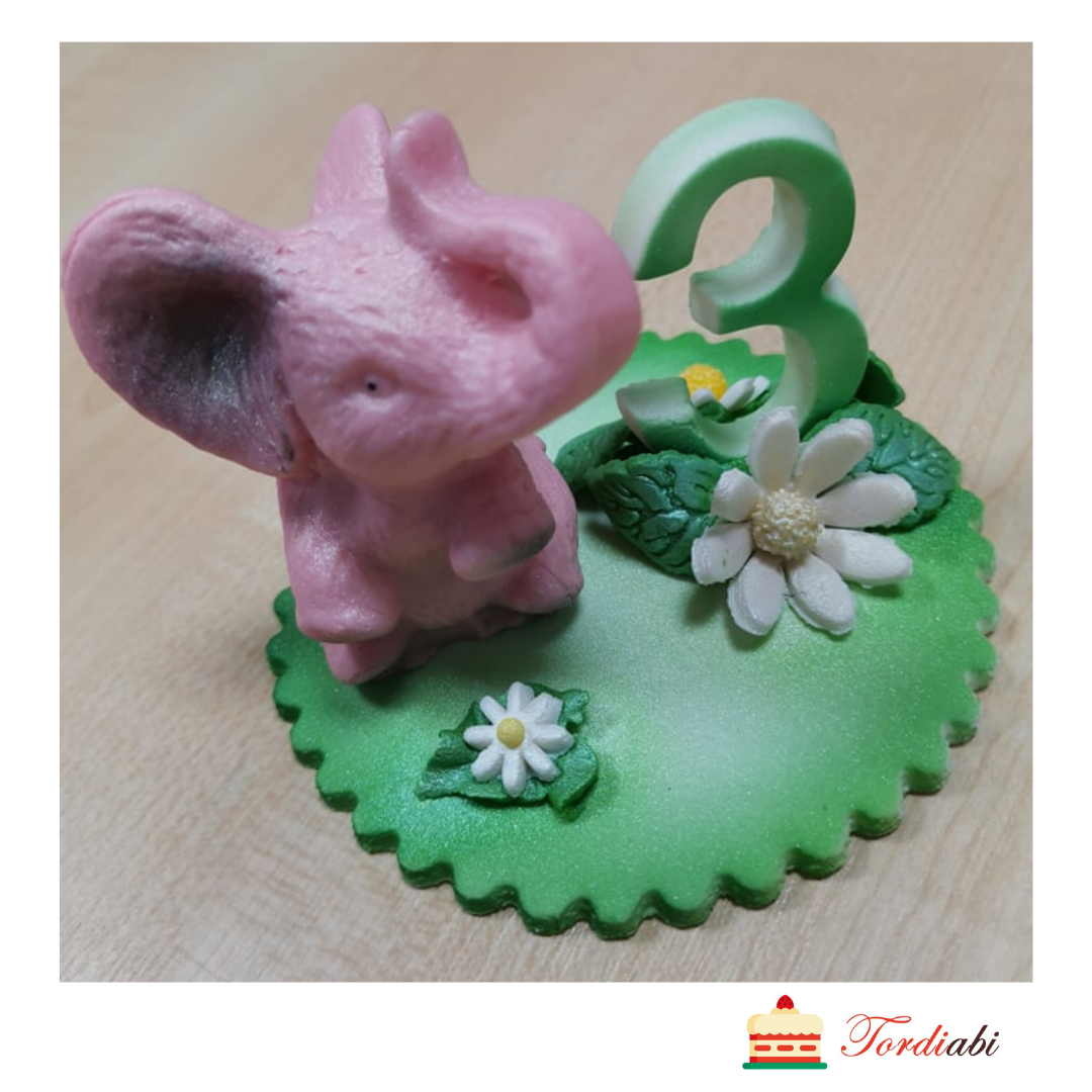 3D suhkrudekoor sünnipäevaks – number 3 roosa elevandiga (mittesöödav), mõõdud 6,5 x 9 cm