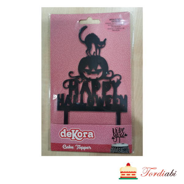 Halloweeni topper kassi ja kõrvitsaga HAPPY HALLOWEEN