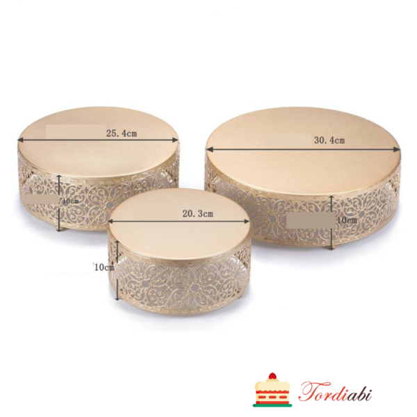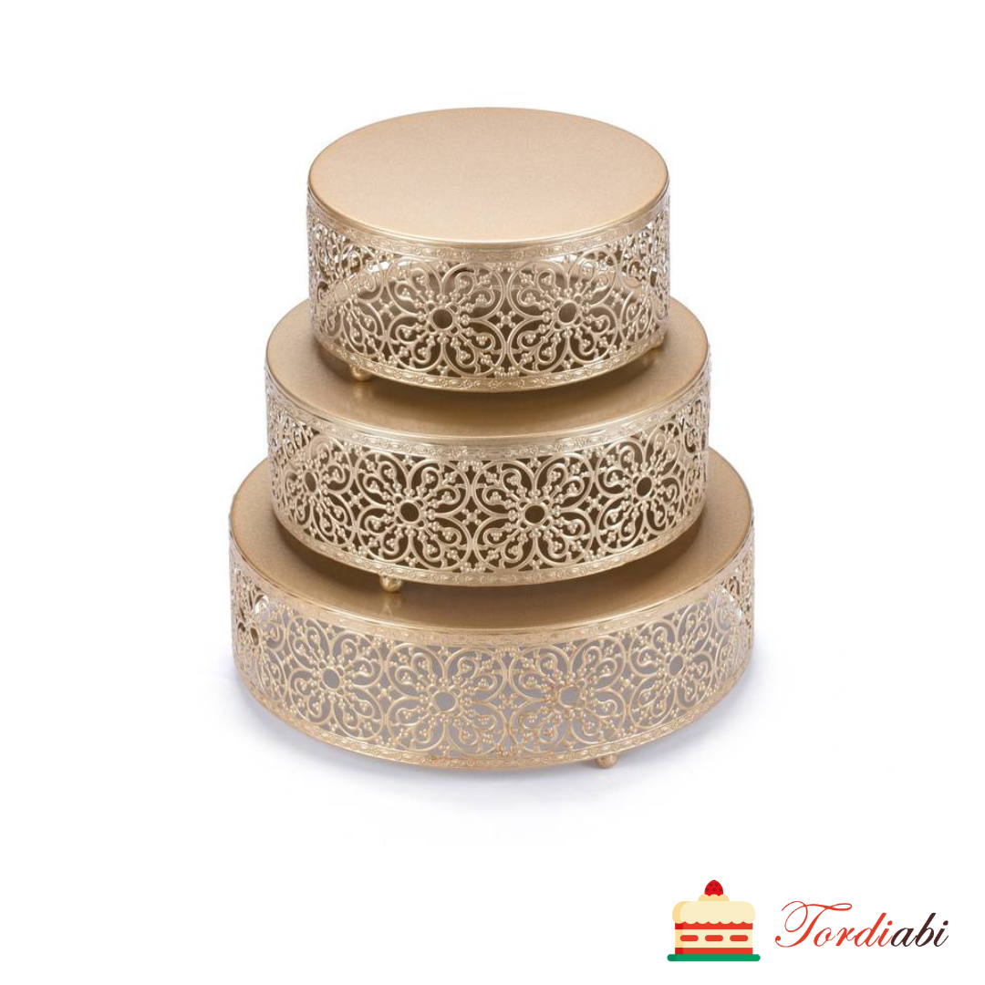Elegantsed kuldsed pitsiliste servadega metallist tordialused, kokku 3 tk erinevas suuruses aluseid.