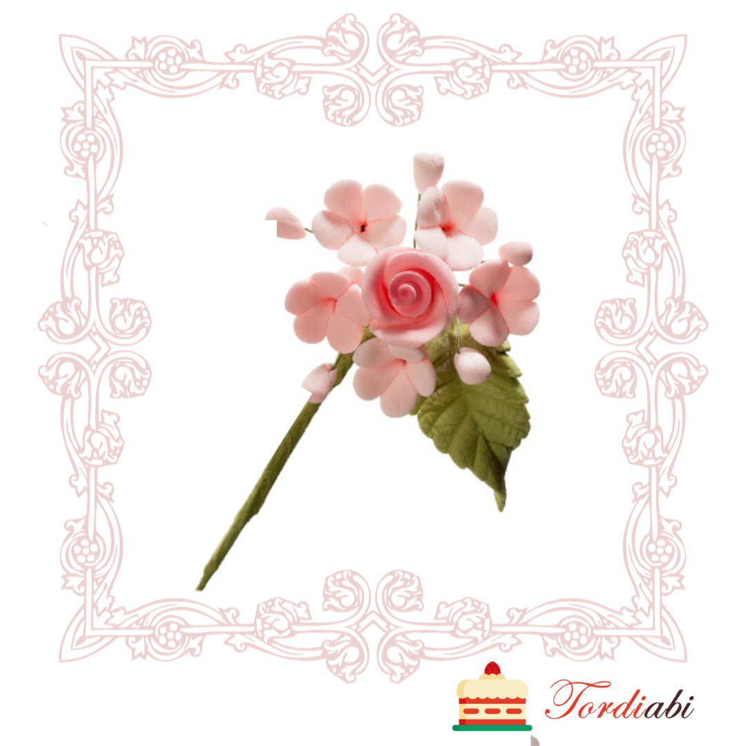 Lillekimp roosiga roosadest hortensiatest, mittesöödav suhkrudekoor – 10 cm