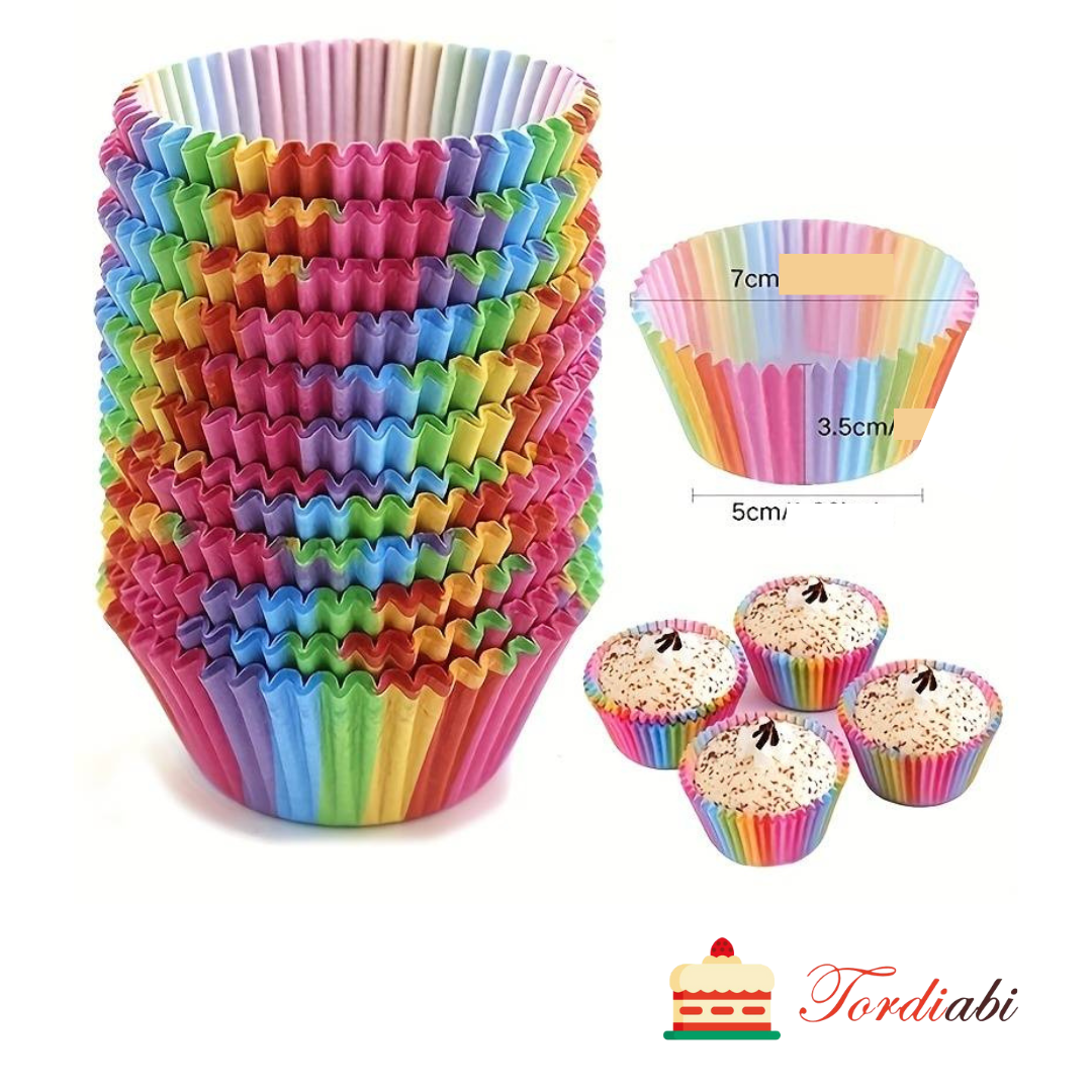 Tordiabi muffinivormid vikerkaare värvides 50 tk