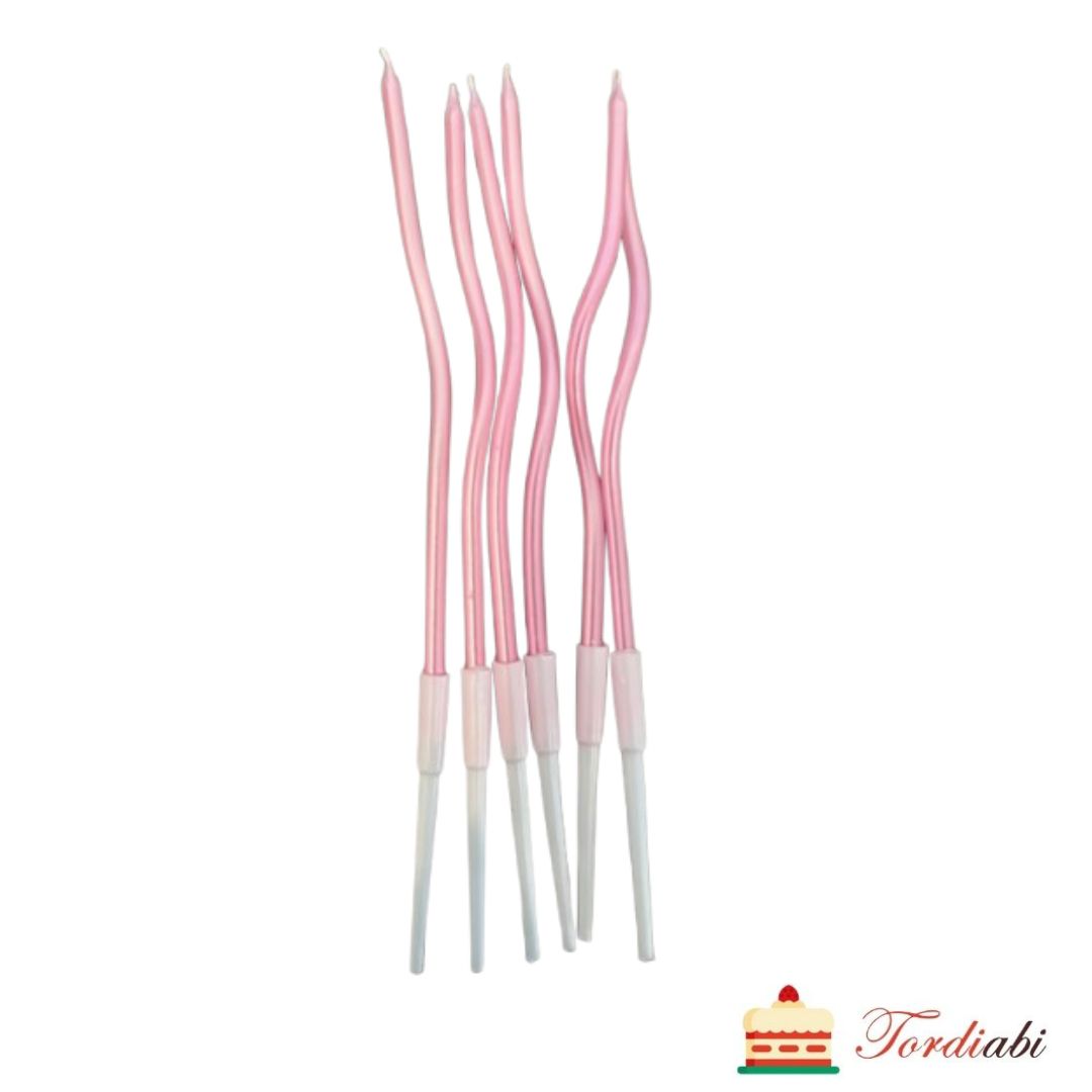 Pikad kõverad roosad tordiküünlad – 6 tk