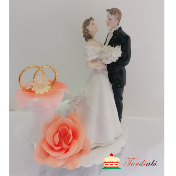 Pulmatordi kaunistus (mittesöödav) – vastamisi seisev pruutpaar sõrmustega, heleroosa roos