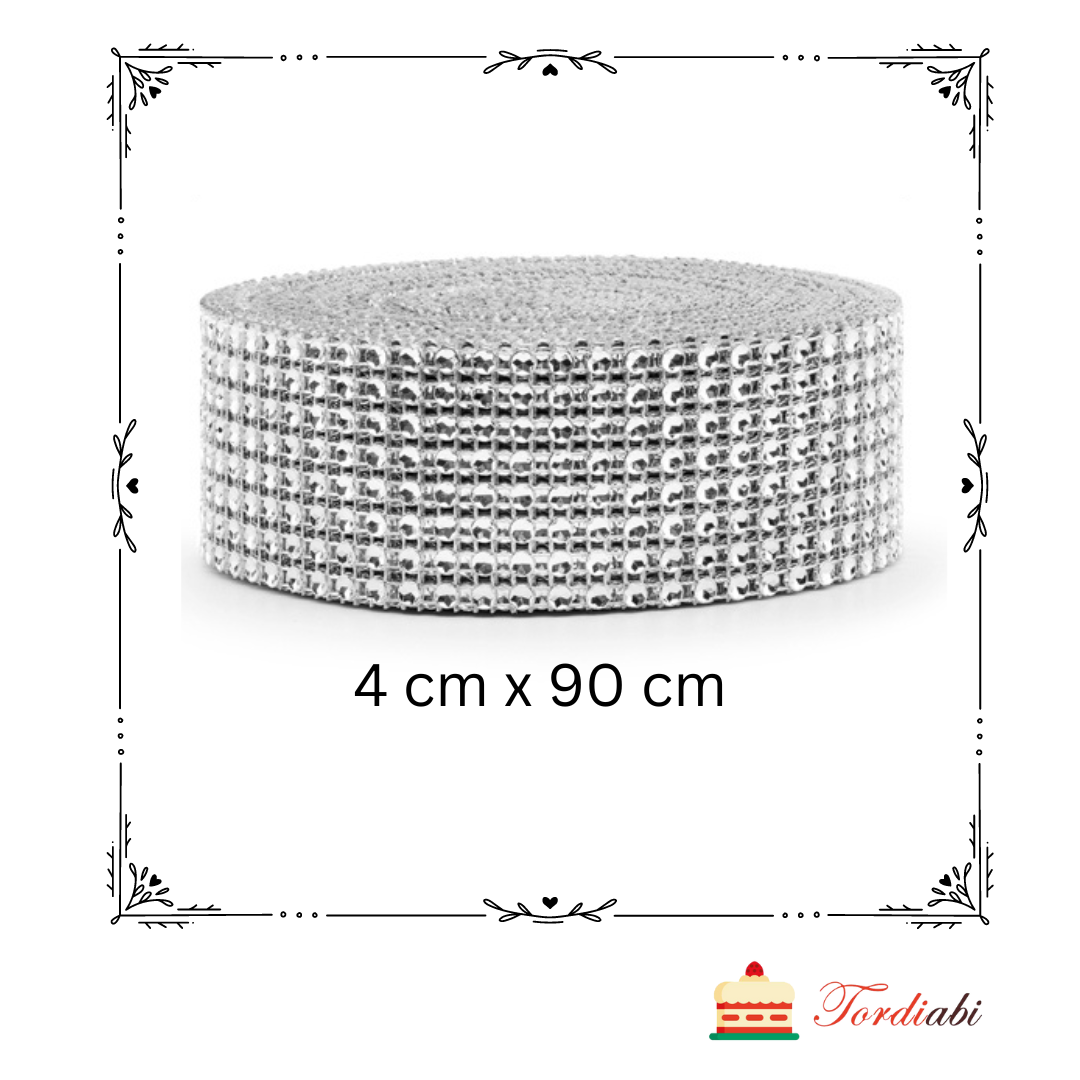 Esileht / Kõik torditegemiseks vajalik VÄRVIDE KAUPA / Hõbedane / Hõbedane pael sädelevate kristallidega, laius 4 cm – pikkus 90 cm