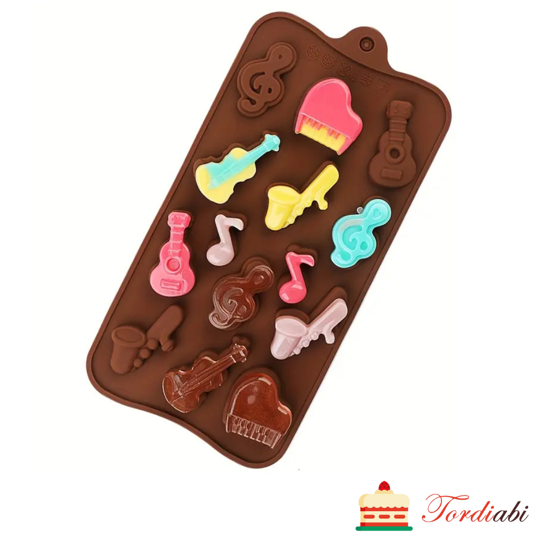 Suurepärane vorm, et valmistada oma tordile erinevaid muusikariistu. Sobib kasutamiseks nii šokolaadi kui ka suhkrumassiga.