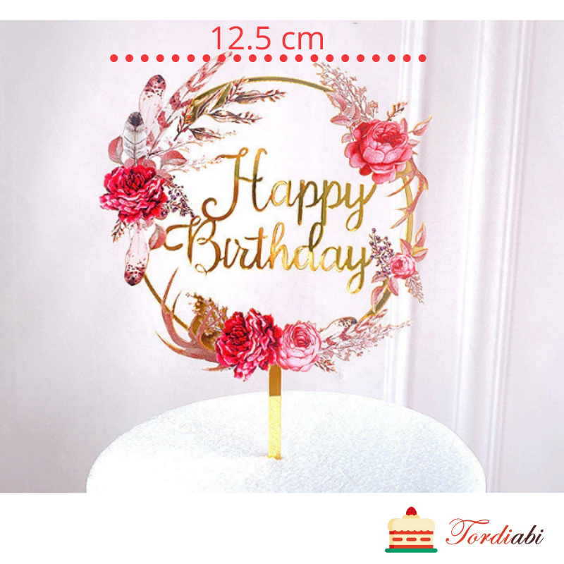 Tordi topper – Happy Birthday (lillepärjaga), läikiv kuldne