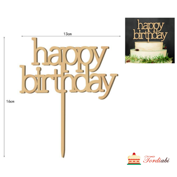 Tordiabi Happy Birthday väikese tähega puidust topper