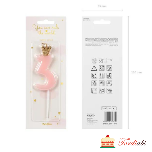 Tordiküünal, number 3 roosa, kuldse krooniga