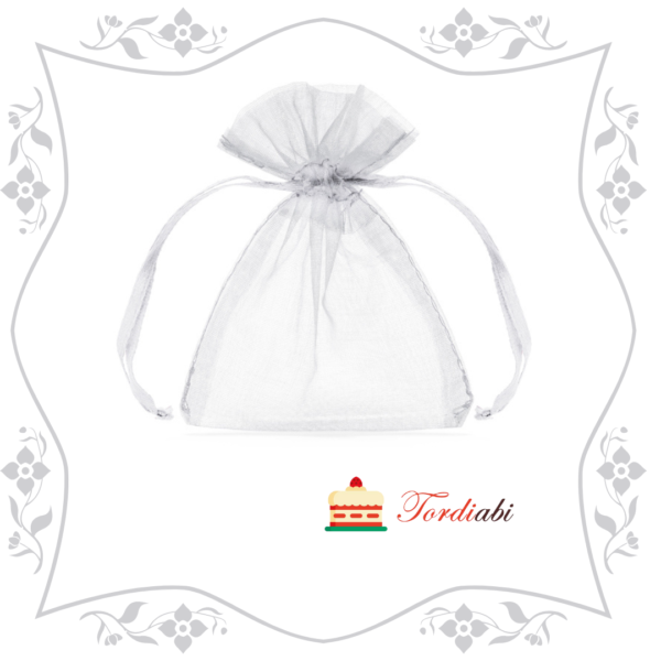 Esileht / Kõik torditegemiseks vajalik VÄRVIDE KAUPA / Valge / Väike valge organza kotike läbipaistvast tekstiilist 7,5 x 10 cm